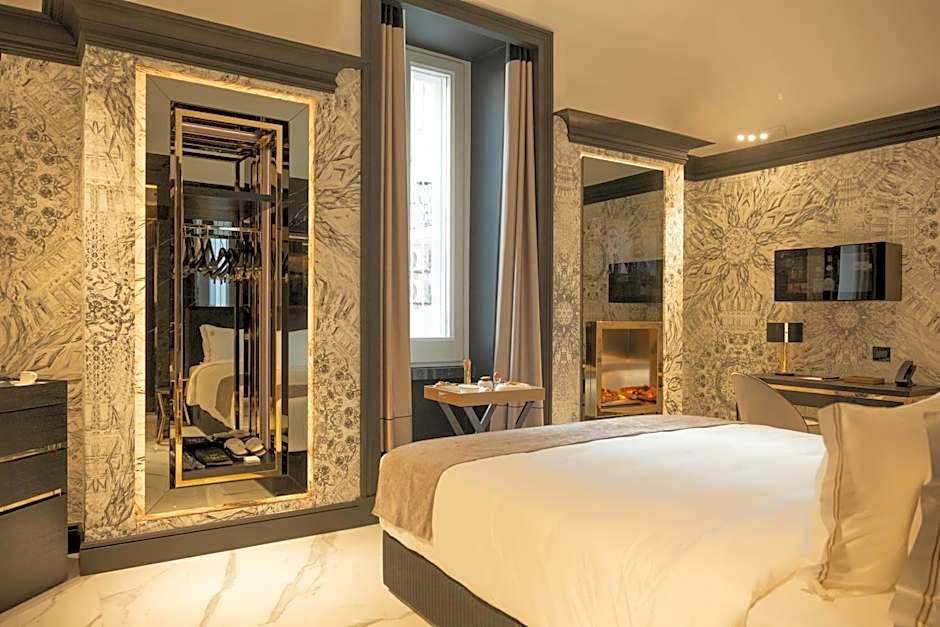 This double room's special feature is the fireplace. Providing free toiletries and bathrobes, this double room includes a private bathroom with a walk-in shower, a bidet and a hairdryer. The spacious air-conditioned double room provides a flat-screen TV with streaming services, soundproof walls, a mini-bar, a tea and coffee maker as well as city views. The unit offers 1 bed.